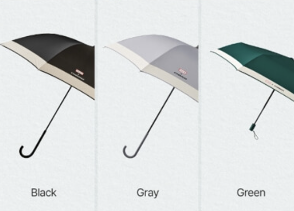 블랙과 그레이는 헌터 브랜드 느낌이 강하고, 그린 폴딩 우산은 스타벅스만의 독특한 색상이라 모두 다른 매력을 보여줍니다.